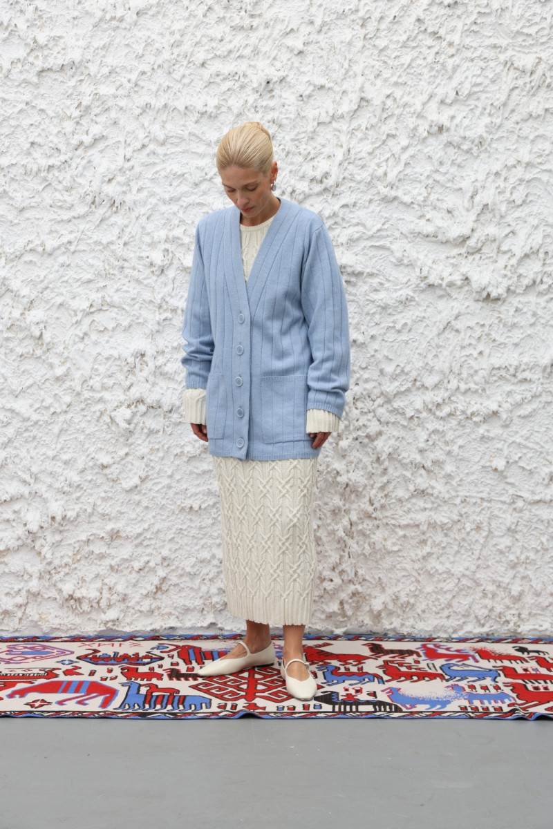 глибока V-подібна горловина, довгі широкі рукави, застібка на ґудзики та