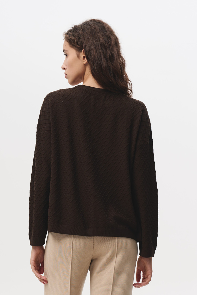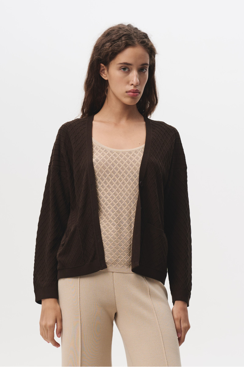 жакет на ґудзиках з віскозної пряжі з переплетінням у вигляді дрібних ромбів. V-подібний