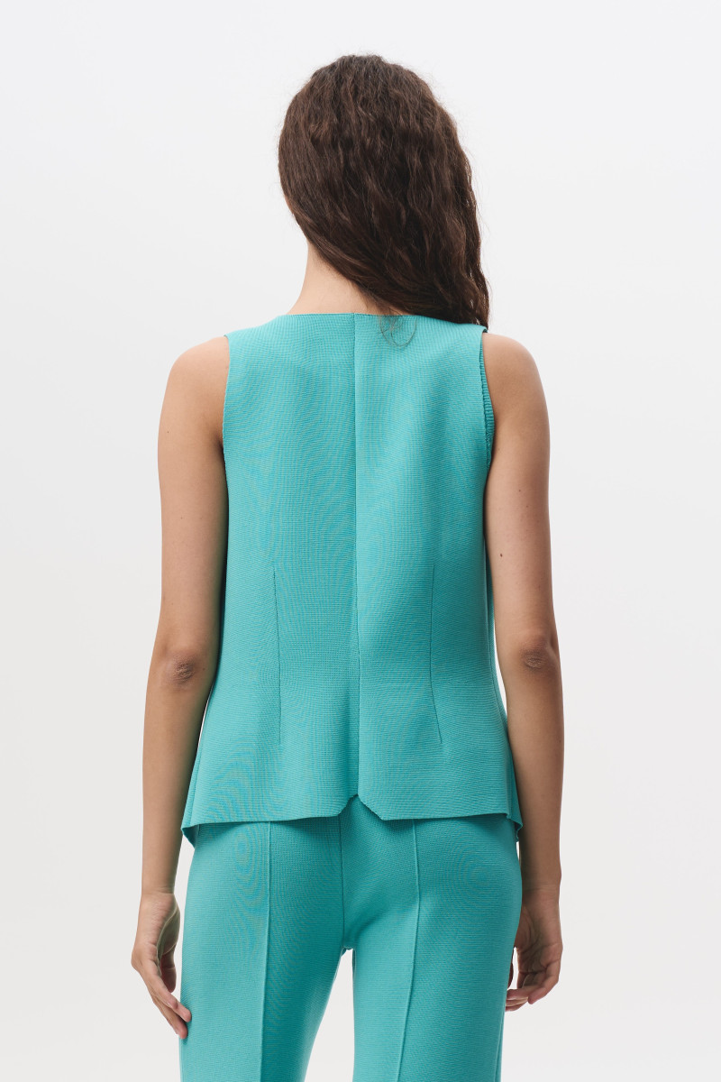 жилет без застібок із тонкої віскозної пряжі з гладким щільним переплетінням. V-подібна горловина та пройми без